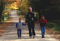 Dann kommt sein leiblicher Vater, welcher getrennt von ihm lebt. Auch dieser freut sich. Der Klient fühlt sich zu ihm hingezogen. Ich fordere ihn auf, ihm dies zu sagen und zu zeigen. Darauf hin weinen beide. Th: Ja, spür einfach, welche tiefe Verbindung da ist zwischen dir und ihm. Kl: Ja, ich hab so das Gefühl, als wenn gar nichts anderes da wäre, nur wir beide. Mm ... ja, ich bin froh und traurig und ich weiß auch nicht genau ... Ja, er sagt, er wüßte auch nicht genau, vielleicht wäre er schuld. Vielleicht ... er sagt, weil er so wenig Zeit hatte. Th: Aha ja, ist es so? Spür doch mal, du bist ihm so ein bißchen gram, weil er so wenig Zeit hatte für dich? Kl: Ja, ist so, ja, ja. Also, ich fühl mich irgendwie ‘nen bißchen gemein, aber das ist auch erleichternd. Th: Willst du ihn lieber gerne öfter sehen? Sollte er mehr mit dir unternehmen? Kl: Ja, und ich will ihm mehr erzählen können und mehr Vertrauen auf ihn haben. Th: Ja, sag ihm das auch. Spür einfach auch, daß du manchmal jemanden brauchst, Freunde, die dir zuhören, wo es wirklich drum geht, daß jemand zuhört. Kl: Ja, er sagt, daß er probiert, sich zu ändern und entschuldigt sich dafür. Th: Kannst du es annehmen? Ja? Dann sag es ihm auch. Daß es ok ist. Und dann stell dir einfach mal vor, du würdest mit ihm was unternehmen, jetzt in deiner Phantasie. Schau mal, was du dir raussuchst, was ihr gemeinsam macht.